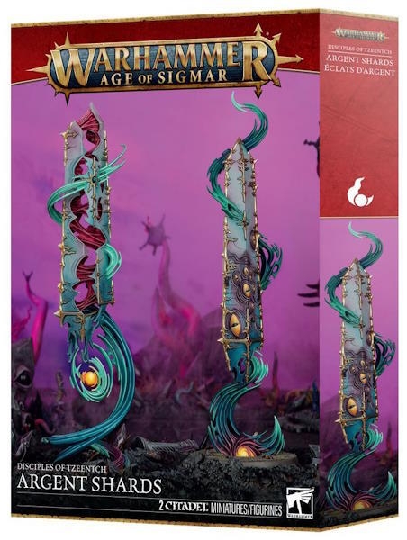 Argent Shards er to splinter af magisk krystal, der er brækket af den dæmoniske kerne i et Silver Tower, og som udstråler Tzeentchs vanvid og mutative korruption. Troldmændene fra Change God kan trække på denne kraftfulde kilde for at styrke deres magi. Hvis et af disse profane monumenter splintres, vil det dele sig i to, så dets anarki kan fortsætte.