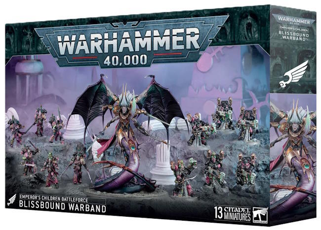 Blissbound Warband er ideelt til at starte en ny Emperor's Children hær, eller udvide en eksisterende samling. Sættet kommer med et udvalg af kerneenheder som enhver Emperor's Children hær kan bruge.