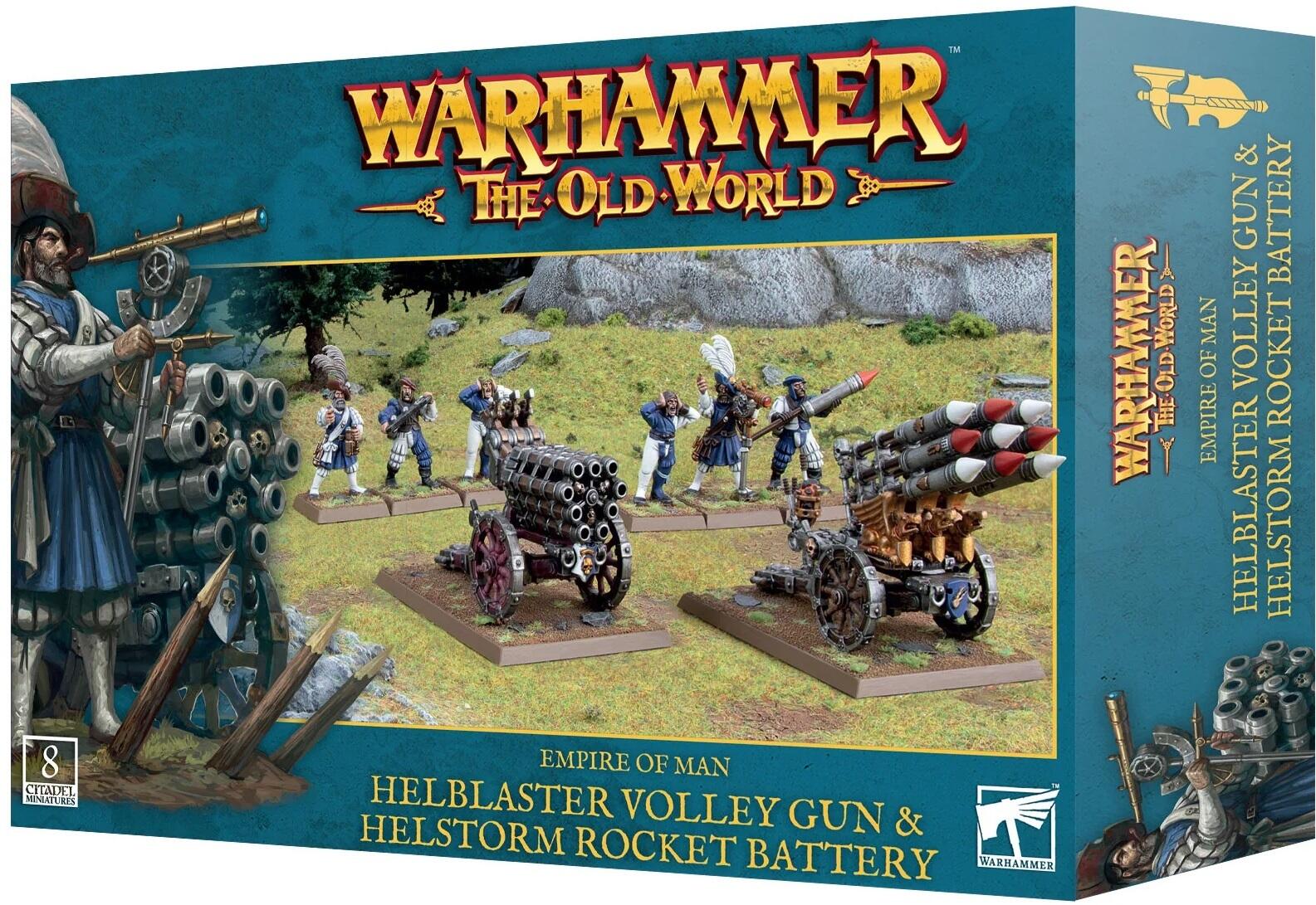 Dette plastiksæt i flere dele bygger to Helblaster Volley Guns eller to Helstorm Rocket Batteries eller en af hver til Empire of Man-hære i spil med Warhammer: The Old World. Det indeholder også seks besætningsmedlemmer - tre til hvert artilleri. Uanset hvordan du vælger at bruge disse dødbringende kreationer, vil du være i stand til at udrydde dine fjender på lang afstand. Sættet indeholder også ekstraudstyr som f.eks. værktøj og våben, så det er nemt at tilpasse dit artilleri.