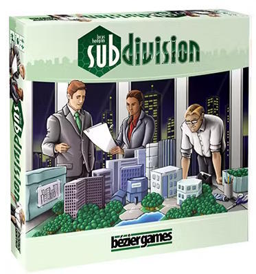 Subdivision efterligner byudviklingsfølelsen fra Bézier Games' Suburbia, men adskiller sig i omfang, da hver spiller nu har fået tildelt et bestemt område, hvor de skal skabe den bedst mulige subdivision ved at fylde det med bolig-, erhvervs-, industri-, offentlige og luksusområder, samtidig med at de skal balancere forskellige forbedringer af området, herunder veje, skoler, parker, fortove og søer. Ved slutningen af spillet vil hver spiller have skabt et unikt, skræddersyet kvarter med områder, der interagerer med hinanden, i håb om at overgå konkurrenterne ved at have den bedste subdivision.