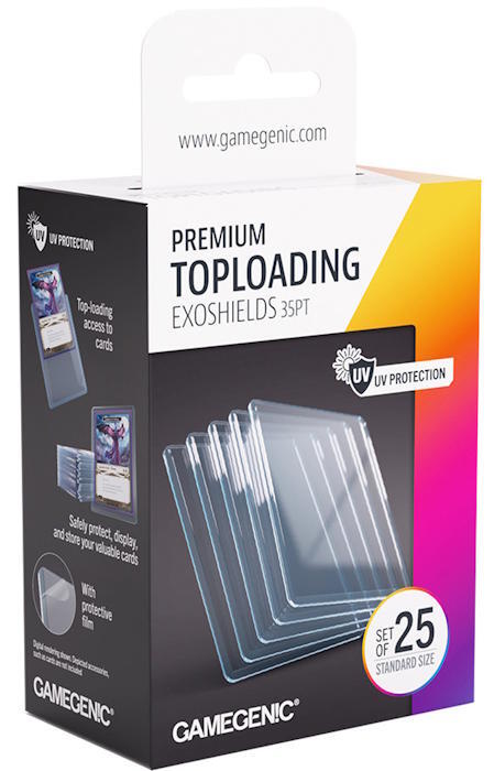 Vores Gamegenic TOPLOADING EXOSHIELDS er højkvalitets, superklare premium toploading-etuier til kort i standardstørrelse. Tykt plast omslutter kortet, holder det rent og forhindrer beskadigelse. TOPLOADING EXOSHIELDS er stive, holdbare og UV-beskyttede, hvilket gør dem ideelle til en lang række anvendelser. De er designet til at rumme kort i sleeves*, f.eks. Gamegenics Prime/Matte Sleeves og Standard Card Game Sleeves (farvekode: grå). De rummer kort med en tykkelse på op til 35 pt og fås i størrelsen 3» x 4«. En pakke indeholder 25 stk. Beskyt dine mest værdifulde kort i enhver situation. Forsendelse, opbevaring, fremvisning – vores TOPLOADING EXOSHIELDS giver maksimal beskyttelse!
