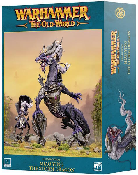 Dette flerdelte plastik-sæt indeholder Miao Ying i både hendes drage- og menneskeform til dine Armies of Grand Cathay i Warhammer: The Old World-spil. I sin menneskelige form ser hun ud til at svæve over slagmarken og fryder sig over sin magt, mens hun kommanderer sine hære. Hendes drageskikkelse er majestætisk, flyvende lavt over slagmarken, klar til at bruge sine hugtænder og grusomme kløer til dødelig effekt. I begge skikkelser er hun en formidabel general og magtfuld troldmand. Uanset om du er gamer, maler, eller samler, er Miao Ying, the Storm Dragon en fantastisk blikfangs miniature.