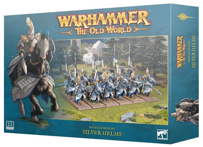Dette plastiksæt i flere dele bygger 12 Silver Helms, tungt elitekavaleri til dine High Elf Realms-hære i spil med Warhammer: The Old World. Disse mægtige ridende krigere og deres heste er klædt i skinnende skjoldbrynjer med høje skjolde og lanser til at nedkæmpe deres bytte. De er ideelle til at lede angreb og bryde igennem fjendens linjer.