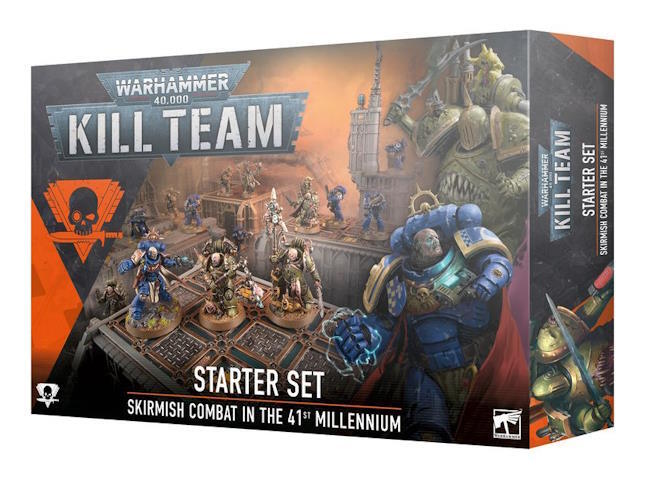 Kill Team: Starter Set indeholder alt, hvad to spillere har brug for til at tage deres første skridt i Kill Team. Det indeholder to komplette kill teams – de overmenneskelige Space Marines fra Angels of Death og deres korrupte modstykker, de modbydelige Plague Marines fra Death Guard. Derudover får du alle de andre værktøjer og tilbehør, du har brug for, samt en række introduktionsscenarier, så du kan lære det grundlæggende i lynhurtige taktiske kampe.
