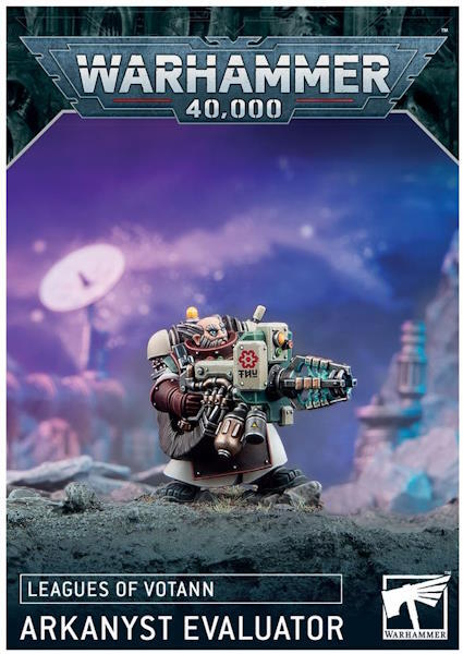 Dette flerdelte plastik-sæt indeholder en Arkanyst Evaluator, en Science Guild field operator til dine Leagues of Votann-hære i Warhammer 40.000-spil. Disse forskere går i krig for at teste deres eksperimentelle våben og giver din styrke betydelig ildkraft. De er bevæbnet med transmatter inverters, som kan affyres på forskellige indstillinger afhængigt af målet. Denne miniature leveres med to forskellige hoveder at vælge imellem – et med hjelm og et uden.