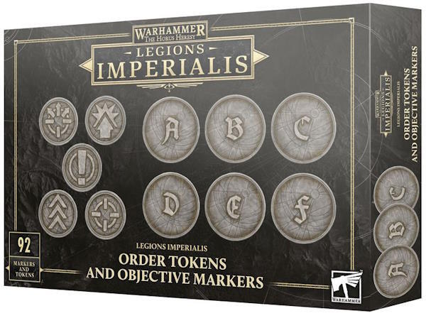 Dette Legions Imperialis: Order Tokens and Objective Markers sæt dobbeltsidede plastik tokens gør det nemt at holde styr på dine enheders ordrer under Legions Imperialis-spil. Du finder brikker til First Fire, Advance, March, Charge og Fall Back med et Legions Imperialis-ikon på bagsiden, så de let kan skjules. Der er også seks Objective-brikker mærket A, B, C, D, E og F. De er støbt i relief, så du kan bruge dem du har malet dem eller ej. Hold fokus på spillet, mens disse brikker holder styr på dine vigtigste enheder.