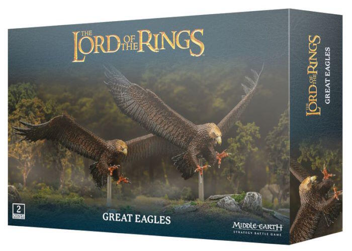 Dette plastiksæt i flere dele bygger to majestætiske Great Eagles til brug i The Eagles, Battle of the Five Armies og Men of the West-hærene. Hver ørn er et kraftfuldt bæst, der er i stand til at omgå forsvaret og angribe bag fjendens linjer, angribe flanker og nedlægge prioriterede mål. De kan også bruges til at repræsentere Fledgeling Great Eagles.