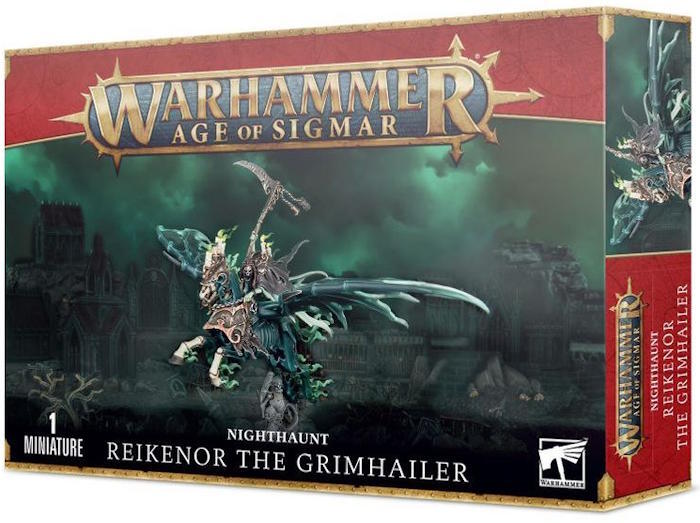 Reikenor Grimhailer er en imponerende aggressiv udseende og uhyggelig Nighthaunt miniature. Hans æteriske form er klædt i en tattered kappe, under hvilken der er synlig en skeletmaske og tynde arme griber hans våben - en stor skyt, kendt som Fellreaper, som har en gravfyldt timeglas hængende fra en kæde - og tæerne af hans Mount, et bevinget mareridt kaldet Kyallaron. Denne steed er storslået, på trods af sin nekrotiske status - store spidte vinger spire fra ryggen, og i det hele taget har det udseende imponerende muskelkraft, selv med sine ribben synlige og benene ikke mere end knogler. Dens pansrede ror er dækket af dråbeagtige lys, ligesom Reikenor er, og hele miniaturen er skildret lavt lavt over en kirkegård scene, en uhyggelig bevinget skelett statue, der yder støtten.