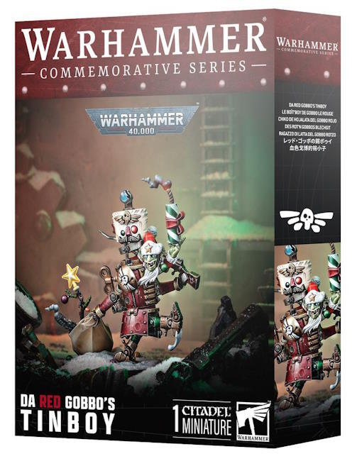 Dette sæt indeholder Da Red Gobbo's Tinboy, en mekanisk konstruktion til dine Orks-hær. Han kan ses kigge frækt ud af lugen, klar til at sprede eksplosiv julehygge, mens han slæber en sæk "gaver" efter sig.