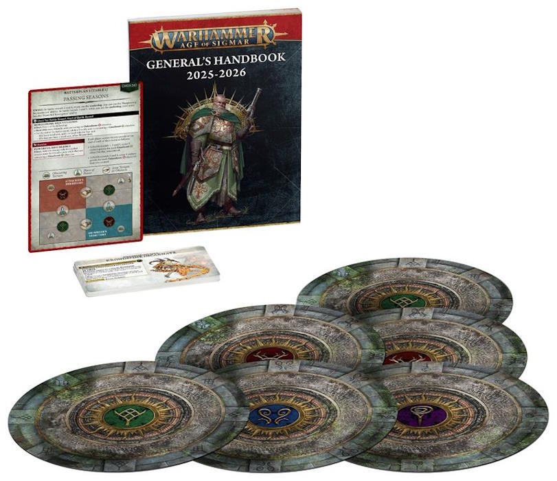 General's Handbook 2025-2026 indeholder et væld af indhold til Matched Play-spil i de krigshærgede omgivelser i Mortal Realms, hvor du kan opnå ære på slagmarken i konkurrencer om dygtighed og lederskab mod andre spillere.