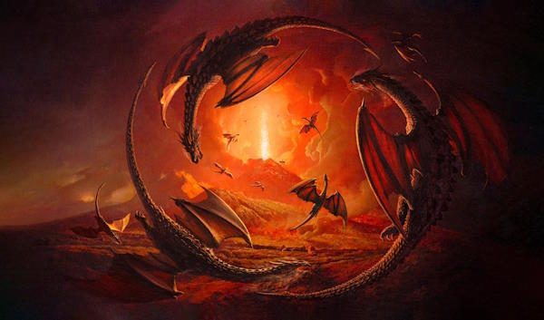 En lækker playmat fra Kraken Wargames, der måler 61 x 35 cm, og er designet primært til kortspil. Dragon Swarm-designet pryder spillemåtten, og viser et landskab klædt i røde toner fra en vulkan i udbrud, hvor en sværm af drager indrammer baggrunden og danner en cirkel af vinger, haler og skæl.