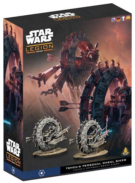 Dette sæt indeholder 2x TSMEU-6 Personal Wheel Bikes samt de kort og tokens du skal bruge for at indsætte dem i Star Wars: Legion. Disse hurtige maskiner stormer hen over slagmarken og leder ens angreb inden de knuser dem uheldige nok til at stå i vejen.