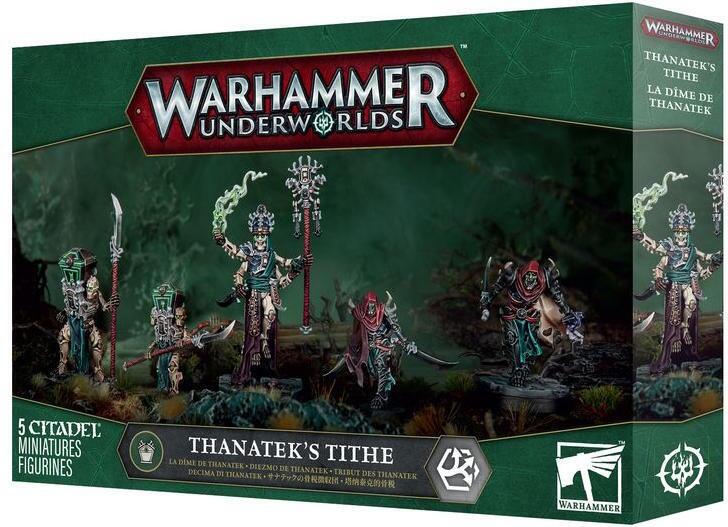 Dette flerdelte plastiksæt indeholder Thanateks Tithe – en komplet krigsflok til brug i Warhammer Underworlds-spil. Det leveres med fighterkort og warscroll-kort til krigsflokken.