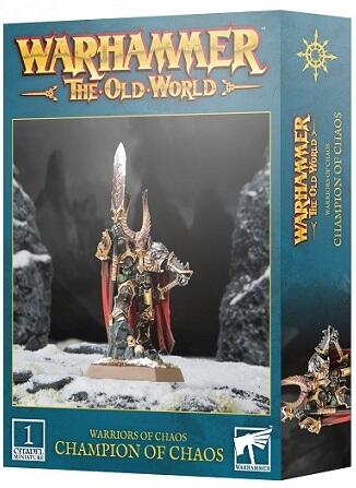 Dette plastiksæt i flere dele bygger en Champion of Chaos til brug i Warriors of Chaos-hære i spil med Warhammer: The Old World. Bevæbnet med et par onde klinger er denne Champion klar til at lede din hær og dræbe i de mørke guders navn.