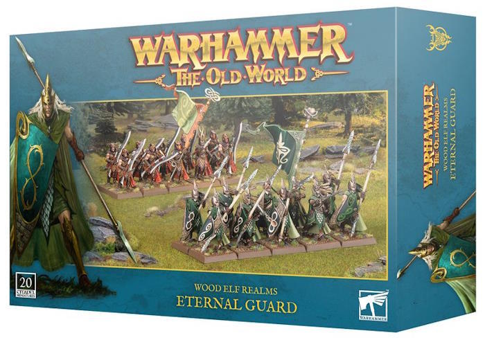 Dette plastiksæt i flere dele bygger 20 Eternal Guard, spydsvingende infanteri til dine Wood Elf Realms-hære i spil med Warhammer: The Old World. De er en utrolig defensiv enhed, der står fast mod fjendens angreb mens de bruger deres lange Asrai-spyd til fulde. De kan alternativt bygges som Wildwood Rangers, frygtløse krigere, der er dygtige til at bekæmpe monstrøse fjender med deres tunge tohånds-glaives.